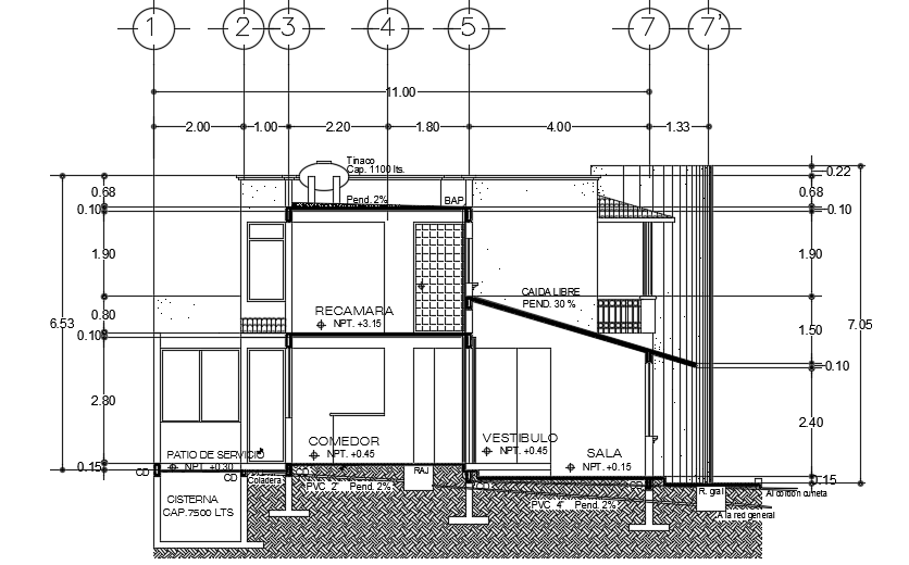 The left side section view of the 12x13m architecture 3bhk house building AutoCAD drawing is given in this file. This is two story residential building. On this ground floor plan, the living room, kitchen, dining area, car parking, patio service, master bedroom, and common bathroom is available. On this first floor plan, the master bedroom, kid’s bedroom, balcony, vestibulo, and common bathroom is available. For more details download the AutoCAD drawing model is given in this file. Thank you for downloading the AutoCAD drawing model from our cadbull website.