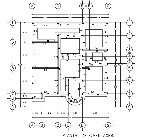 The foundation layout of the 12x13m architecture 3bhk house plan AutoCAD drawing is given