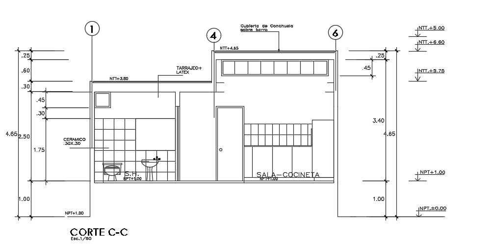 The back side section view of the 6x8m architecture one story house building cad drawing is given in this file. This is a 1bhk house plan. On this floor plan, the living room, kitchen, dining area, master bedroom, patio, open terrace, and common bathroom is available. For more details download the AutoCAD drawing model is given in this file. Thank you for downloading the AutoCAD drawing model from our cadbull website.
