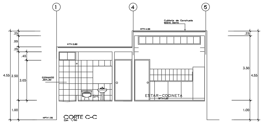 The back side section view of the 7x12m architecture one story house building cad drawing is given in this file. This is a 2bhk house plan. On this floor plan, the living room, kitchen, master bedroom with the attached toilet, dining area, master bedroom, patio, open terrace, and common bathroom is available. For more details download the AutoCAD drawing model is given in this file. Thank you for downloading the AutoCAD drawing model from our cadbull website.
