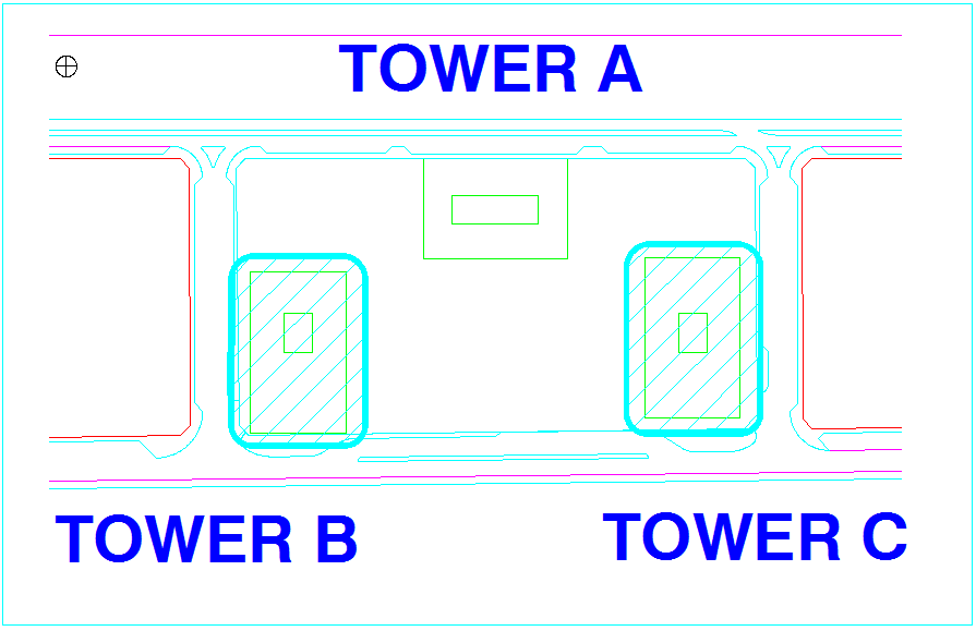 Kaplen tower view of B and C dwg file with view of tower A,B and C and positional view of it and distribution of area.