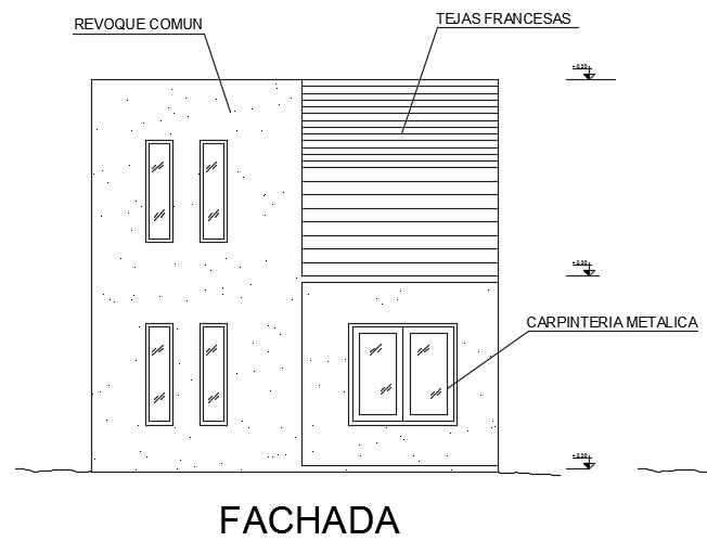 The front elevation view of the 6x6m bungalow house building AutoCAD model is given