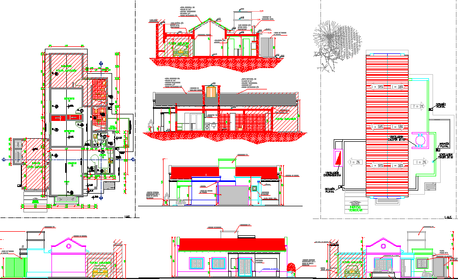 This Villa Design AutoCAD DWG file provides a complete architectural layout, including floor plans, sections, and elevations, ideal for modern residential projects. The design features well-detailed plans with precise measurements, room arrangements, and elevation profiles that showcase the villa’s spatial organization and aesthetic appeal. Each section highlights the structural layering, roof design, and wall detailing with accurate annotations suitable for professional construction and design references.