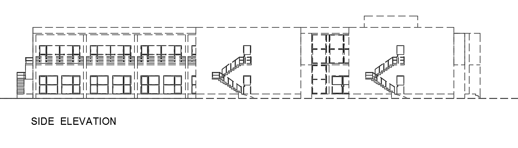The side elevation view of the 77x65m school building 2d AutoCAD DWG drawing file