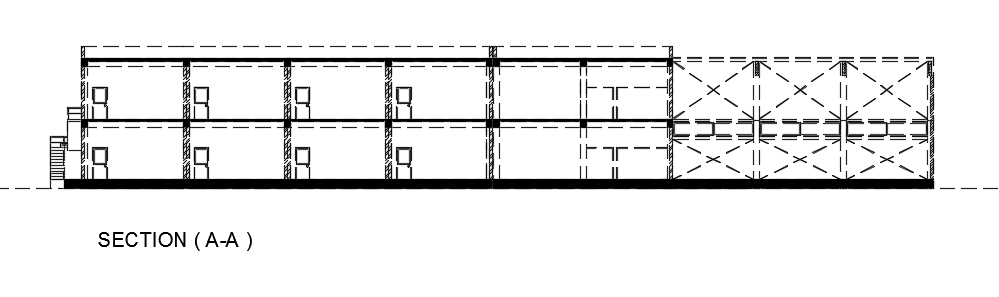 The front cut section view of the 77x65m school building 2d AutoCAD DWG drawing file