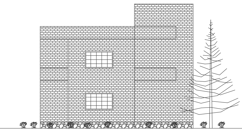 This AutoCAD DWG drawing presents the right side elevation of a 13x10m two-story residential house, showing a clear view of the exterior facade. The ground floor includes a spacious living room, kitchen, dining area, master bedroom, kid’s bedroom, and a common bathroom, while the first floor features a second living area, study room, guest bedroom, master bedroom, a common bathroom, and two balconies that improve ventilation and outdoor space. The drawing provides precise dimensions, structural details, and architectural elements such as window placements, door positions, and roofline details, making it a valuable resource for architects, engineers, and builders to plan construction, estimate materials, and evaluate design, while highlighting the relationship between levels, functional layout, and the overall aesthetic of the house.