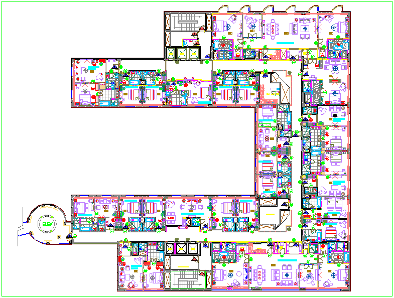 Fourth and fifth floor plan for tower dwg file with view of entrance,elevator,bedroom,
