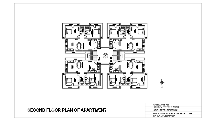 27x20m second floor apartment house plan 2d AutoCAD drawing is given in this file. This is G+ 3 apartment house building. On this second floor plan, four houses are available. These houses are consists of the living room, kitchen, utility area, dining room, master bedroom with the attached toilet & balcony, kid’s bedroom with the attached balcony, and common bathroom. For more details download the AutoCAD drawing model from our cadbull. Thank you for downloading the AutoCAD files from our cadbull website.