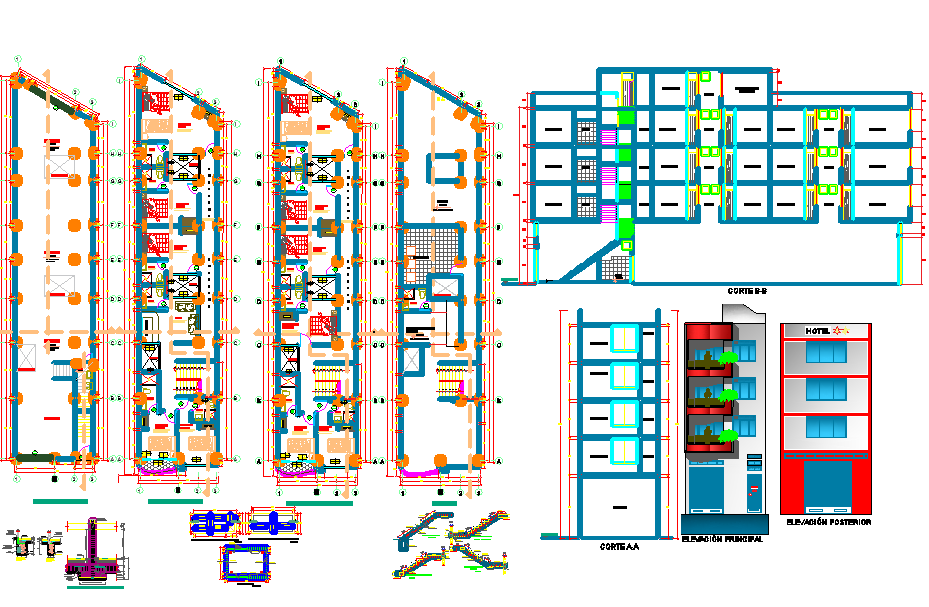 The architecture layout plan of 3 level with furniture detailing, section plan and elevation design of Residence House project.