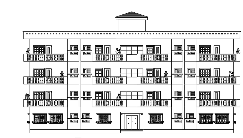 The back side view of the 27x20m apartment house building 2d AutoCAD drawing is given