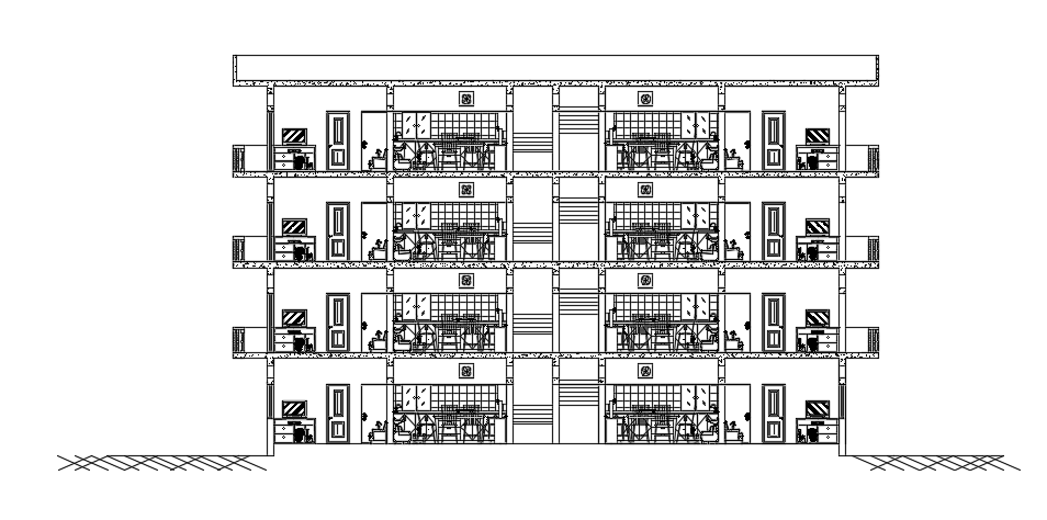 The right section of the 27x20m apartment house building 2d AutoCAD drawing is given in this file. This is G+ 3 apartment house building. On this ground floor plan, four houses are available. These houses are consists of the living room, kitchen, utility area, dining room, master bedroom with the attached toilet & balcony, kid’s bedroom with the attached balcony, and common bathroom. On this second floor plan, four houses are available. These houses are consists of the living room, kitchen, utility area, dining room, master bedroom On this third with the attached toilet & balcony, kid’s bedroom with the attached balcony, and common bathroom. floor plan, four houses are available. These houses are consists of the living room, kitchen, utility area, dining room, master bedroom with the attached toilet & balcony, kid’s bedroom with the attached balcony, and common bathroom. For more details download the AutoCAD drawing model from our cadbull. Thank you for downloading the AutoCAD files from our cadbull website.