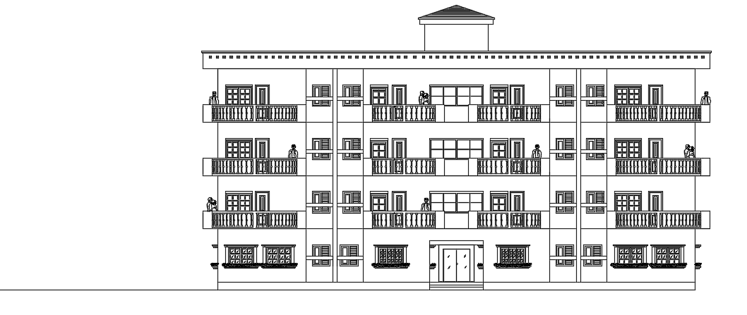 The front elevation of the 27x20m apartment building 2d AutoCAD drawing