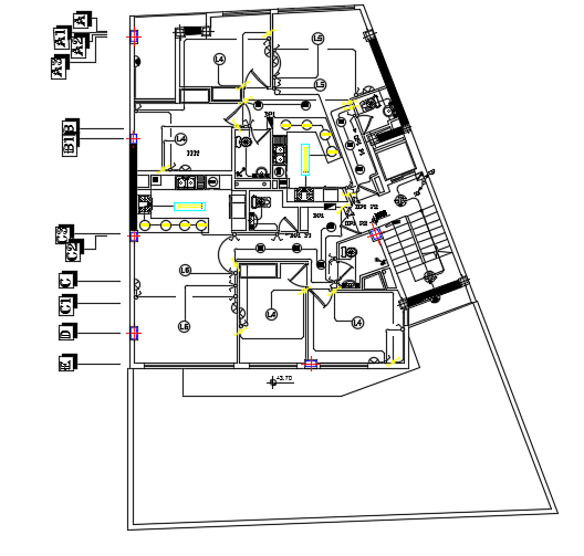 The light system of the 14x14m architecture apartment first floor plan AutoCAD model