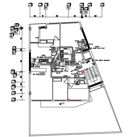 The firefighting, hot & cold water piping layout of the 14x14m architecture apartment first floor plan AutoCAD model