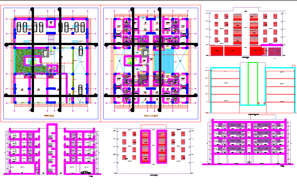 The architecture layout plan of all floor level, parking plan, section plan, furniture arrangement plan and elevation design of Multifamily Housing project.