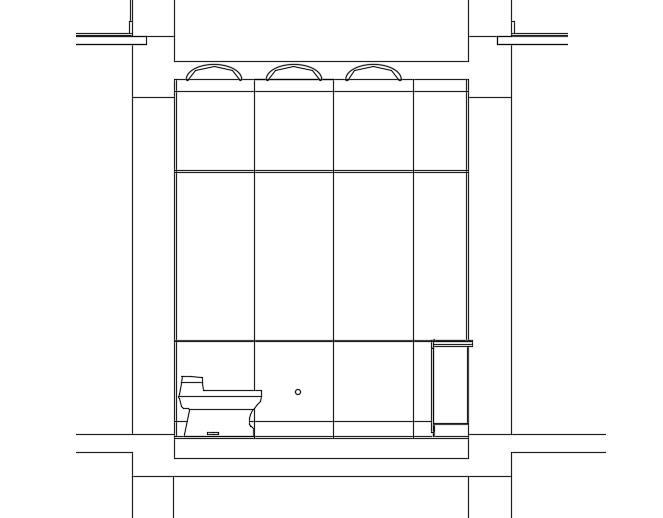 A section view of the 2600x2000mm toilet building AutoCAD model is given