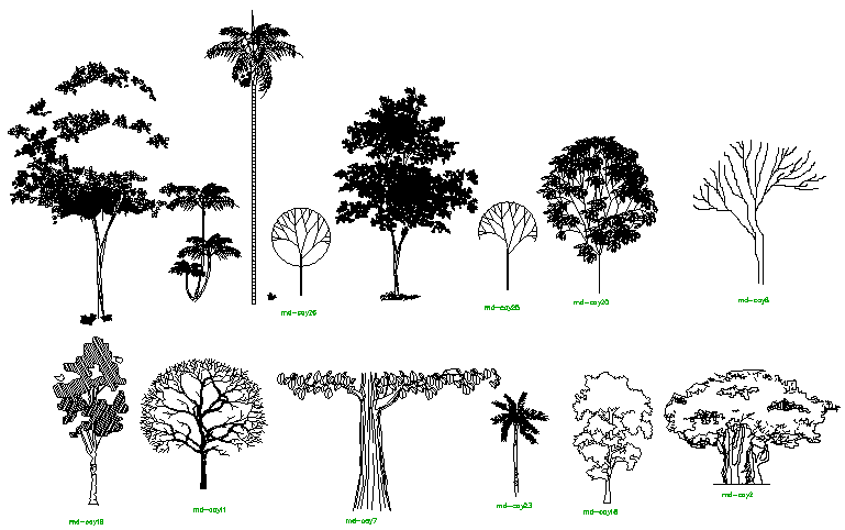 This Heighted Tree AutoCAD DWG file presents a detailed collection of 2D tree elevations, perfect for enhancing architectural and landscape design drawings. The file includes various tree types with realistic height proportions, branching structures, and foliage details, making it ideal for both natural and urban environment projects. The elevation views clearly depict canopy spread, trunk height, and shadowing, helping architects and designers to visualize tree placements accurately within site layouts and elevations.