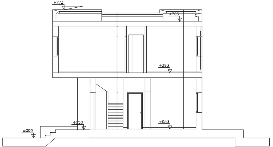 A section view of the 11x9m architecture two story bungalow building cad model is given