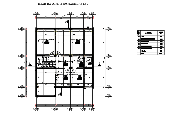 12x15m House Plan Column Layout CAD Drawing G plus 3 DWG File