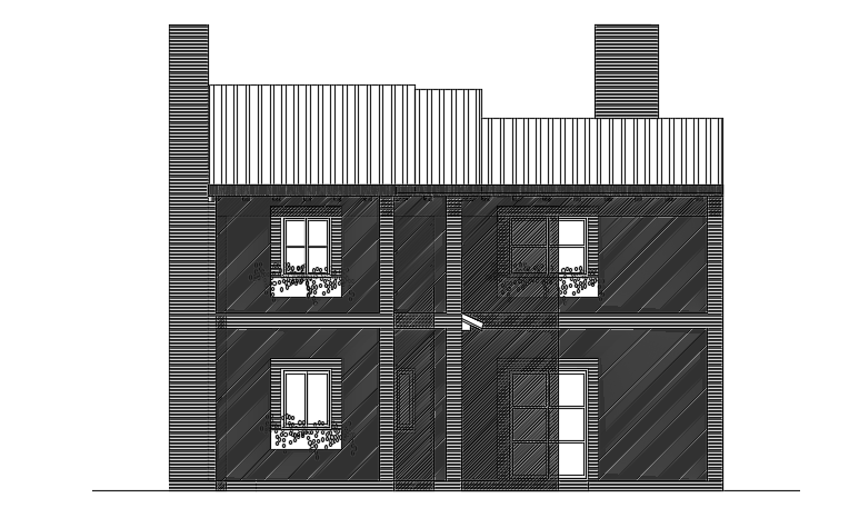 Front Elevation View of 14x12m Two Story House Building CAD Drawing