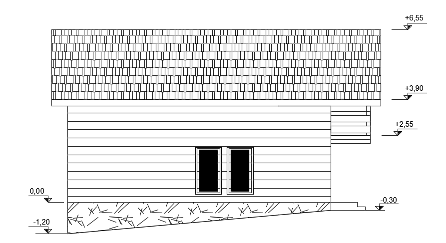 The right side elevation view of the 7x10m architecture two story residential building cad model is given in this file. This is a 3bhk house plan. On this ground floor plan, the living room, kitchen, dining area, and common bathroom is available. On this first floor plan, the master bedroom, kid’s bedroom, guest bedroom, and common bathroom is available. For more details download the AutoCAD drawing model from our cadbull. Thank you for downloading the AutoCAD files from our cadbull website.