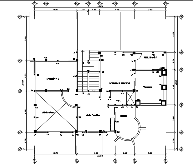 A column layout of the 16x16m architecture first floor house plan is given in this file