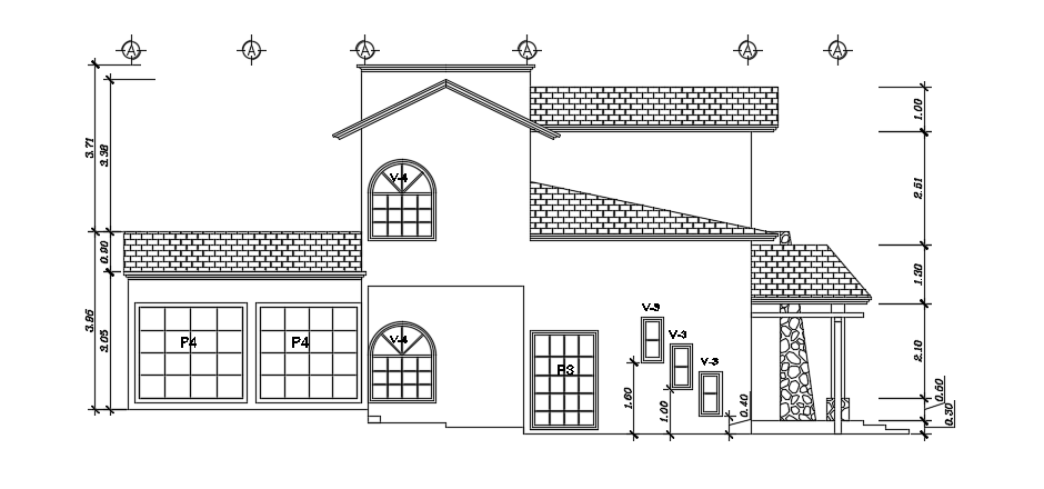 The left side elevation view of the 16x16m architecture house building is given in this file. This is two story villa building. On this ground floor, a car parking, living room, kitchen, dining area, study room, master bedroom with the attached toilet, and common bathroom is available. On this first floor, the master bedroom with the attached toilet, kid’s bedroom, and common bathroom is available. For more details download the AutoCAD drawing model from our cadbull. Thank you for downloading the AutoCAD files from our cadbull website.