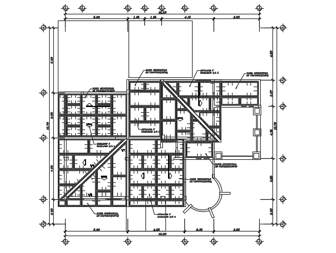 A slab layout of the 16x16m architecture first floor house 2d cad drawing is given