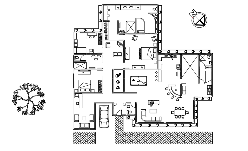 A roof layout of the 22x23m architecture single story family house plan cad drawing is given in this file. On this floor plan, a car parking, living room, kitchen, dining room, TV room, master bedroom with the attached bathroom & bathtub, kid’s bedroom, guest bedroom, and common bathroom is provided. For more details download the AutoCAD drawing model from our cadbull. Thank you for downloading the AutoCAD files from our cadbull website.