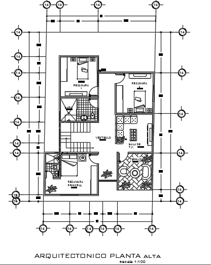 A layout of the 10x15m architecture two story first floor house plan cad drawing is given in this file. This is g+ 1 house building. On this first floor, the master bedroom with the attached bathroom, TV room, kid’s bedroom, guest bedroom, open terrace, and common bathroom is available. For more details download the AutoCAD drawing model from our cadbull. Thank you for downloading the AutoCAD files from our cadbull website.