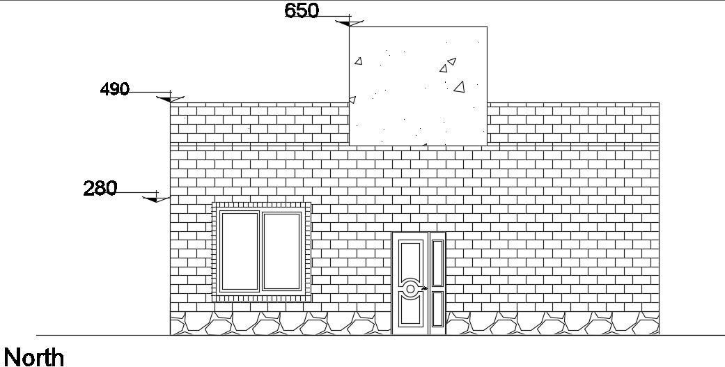 The north side elevation view of the 11x15m architecture house building 2d AutoCAD DWG drawing