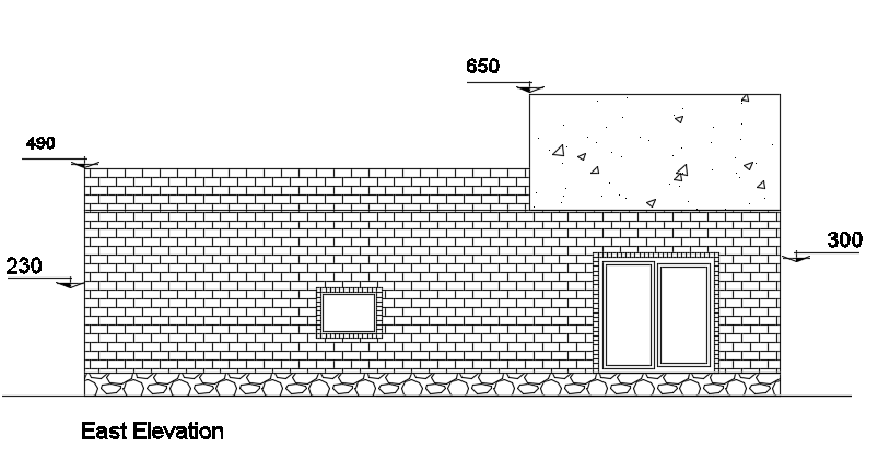 The east side elevation view of the 11x15m architecture house building 2d AutoCAD DWG drawing is given in this file