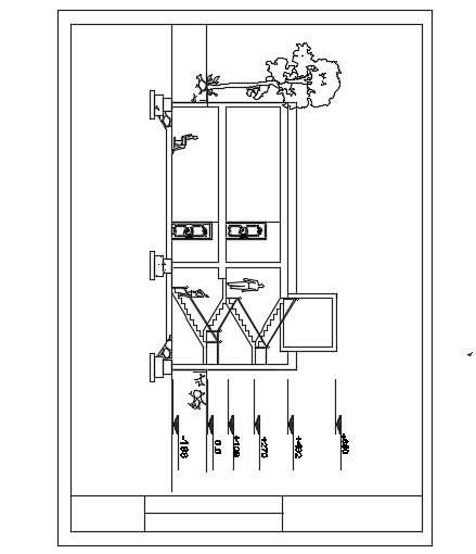 The left side section view of the 11x15m architecture house building 2d AutoCAD DWG drawing