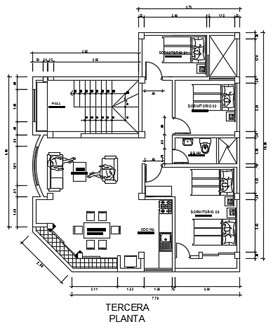 9x10m architecture three story first floor hotel cum house plan AutoCAD model is given in this file. This is G+ 2 building. On this second floor, the living room, kitchen, dining area, master bedroom, kid’s bedroom, guest bedroom, and common bathroom is available. For more details download the AutoCAD model from our cadbull website. Thank you for downloading the AutoCAD files from our website.