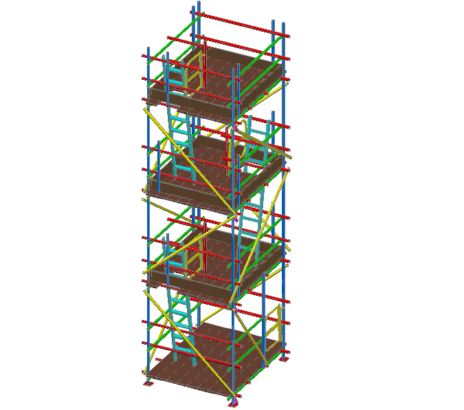 Static tower view with ladle in 3D dwg file with base and four floor view and ladle