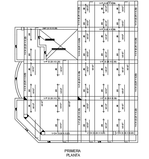 A slab layout of the 9x10m architecture three story first floor hotel cum house plan slab reinforcement cad drawing