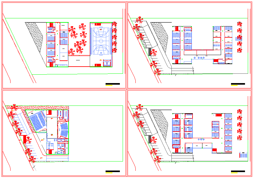 College Project dwg file. The architecture layout plan with furniture detailing, sports ground, and elevation design of Modern Villa Project..