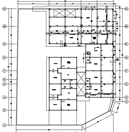 The beam and column layout of the 30x36m architecture first floor multifamily apartment house plan cad drawing