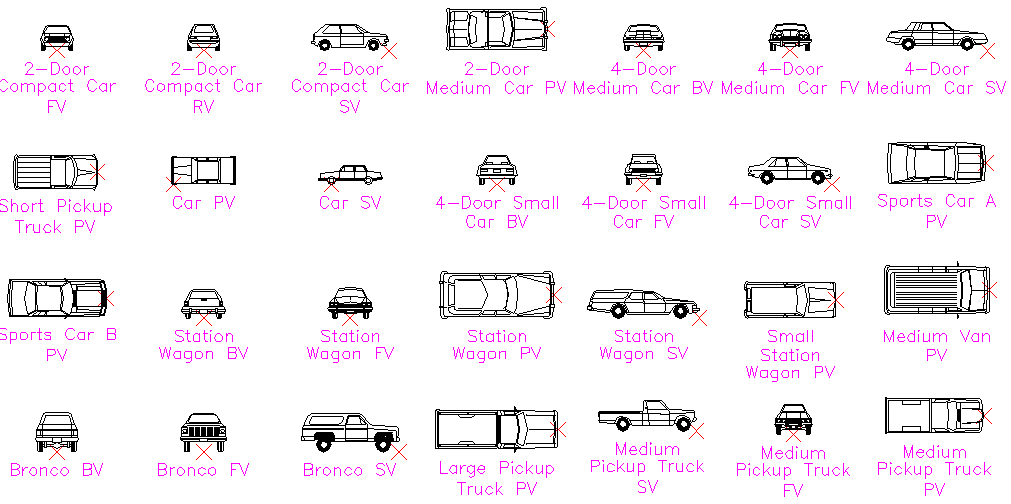 Cars Pickups and Vans AutoCAD DWG with 2D Front and Top Views