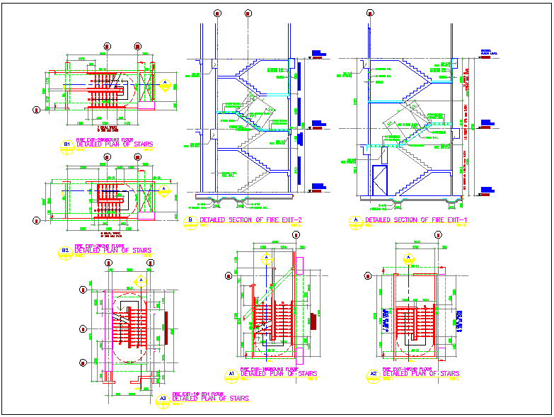 Sectional view of staircase of tower dwg file with view of floor and staircase with