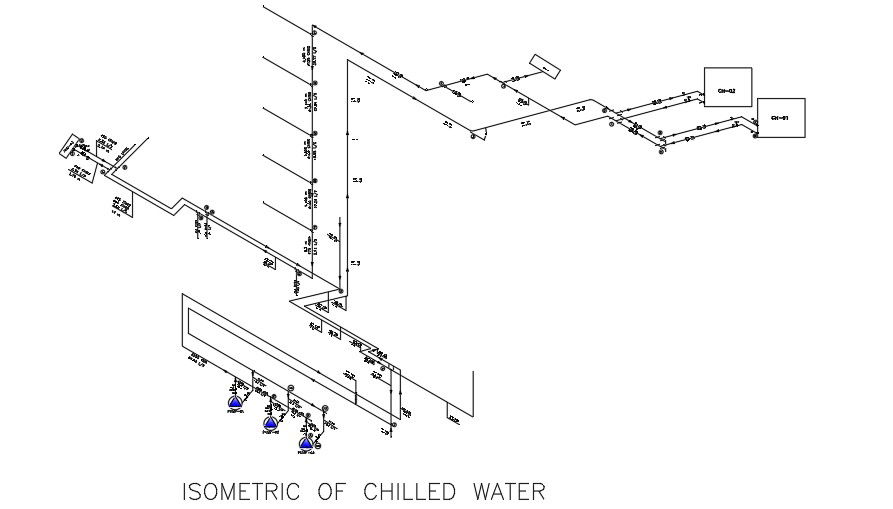 This architecture drawing is of isometric view of chilled water plant. In this drawing file, the detail dimension are mention, the way and the path is also mention. For more details and knowledge of this drawing visit cadbull website. Thankyou for visiting cadbull hope this was helpful.