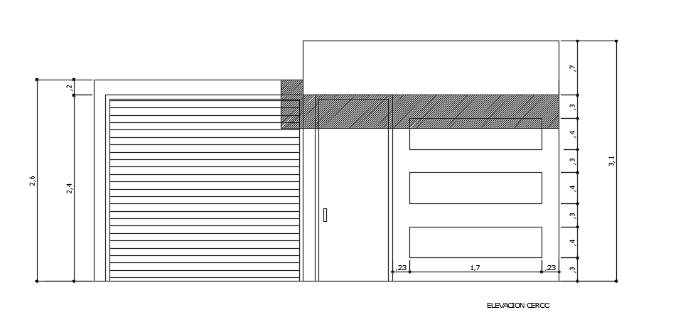 The front elevation view of the 6x15m house building ground floor is given in this 2D AutoCAD file. For more details download the AutoCAD drawing file from our cadbull website. Thank you for downloading the AutoCAD files from our website.