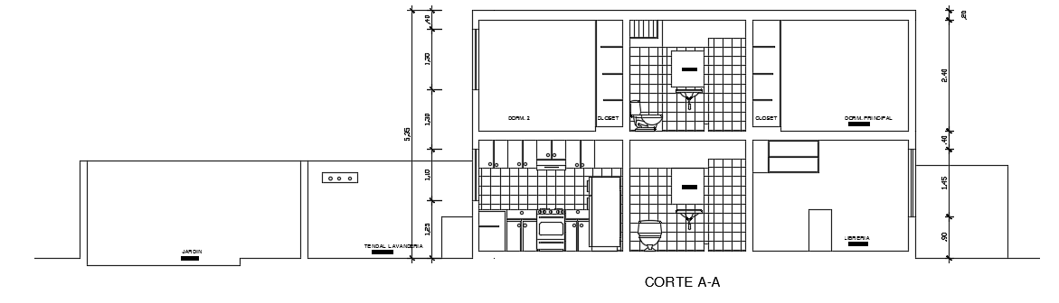 The back side section view of the 20x6m two story house building cad drawing model is given in this file. This is a 3bhk house plan. On this ground floor, the living room, kitchen, dining room, verandah, lavanderia, garden, libreria, common bathroom, and passage is available. On this second floor, the living room, master bedroom, guest bedroom, kid’s bedroom, and common bathroom is available. For more details download the AutoCAD drawing file from our cadbull website. Thank you for downloading the AutoCAD files from our website.