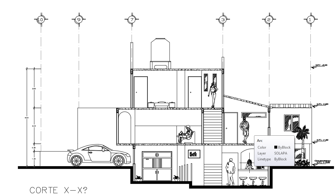 The left side section view of the 14x18m architecture house building 2d Autocad drawing is given in this file. This is two story residential building. On this ground floor, a car parking, living room, study room, vestibulo, kitchen, dining room, storeroom, lavanderia, garden, and common bathroom is available. On this first floor, TV room, master bedroom with the attached bathroom, guest bedroom, kid’s bedroom, and common bathroom is available. For more details download the AutoCAD drawing file from our cadbull website. Thank you for downloading the AutoCAD files from our website.