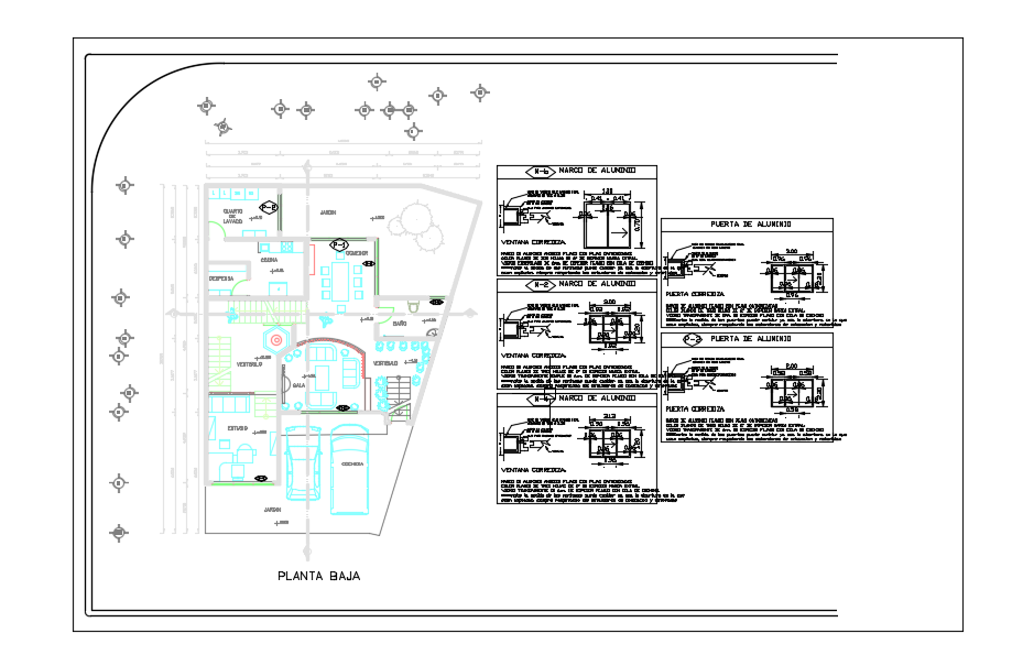 A window detail drawing of the 14x18m architecture ground floor house plan 2d Autocad drawing is given in this file. This is two story residential building. On this ground floor, a car parking, living room, study room, vestibulo, kitchen, dining room, storeroom, lavanderia, garden, and common bathroom is available. For more details download the AutoCAD drawing file from our cadbull website. Thank you for downloading the AutoCAD files from our website.