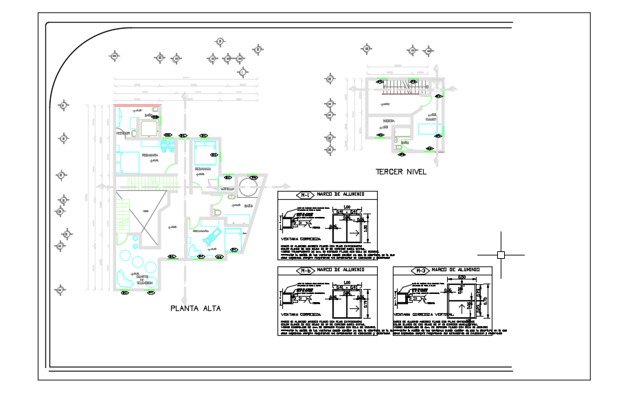 A window detail drawing of the 14x18m architecture first floor house plan 2d Autocad drawing