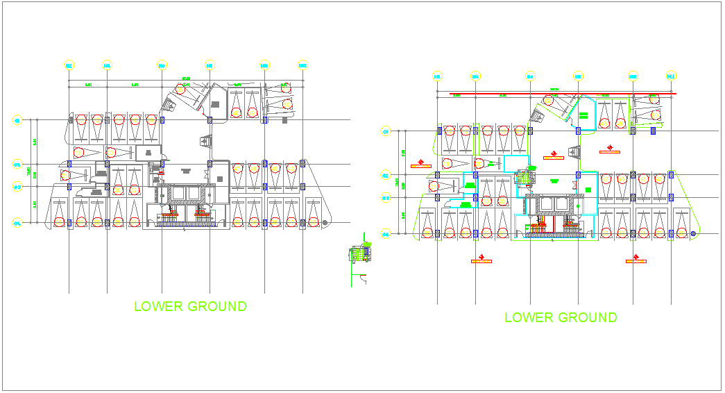 Floor tile driver view for tower dwg file with area distribution and lower ground view