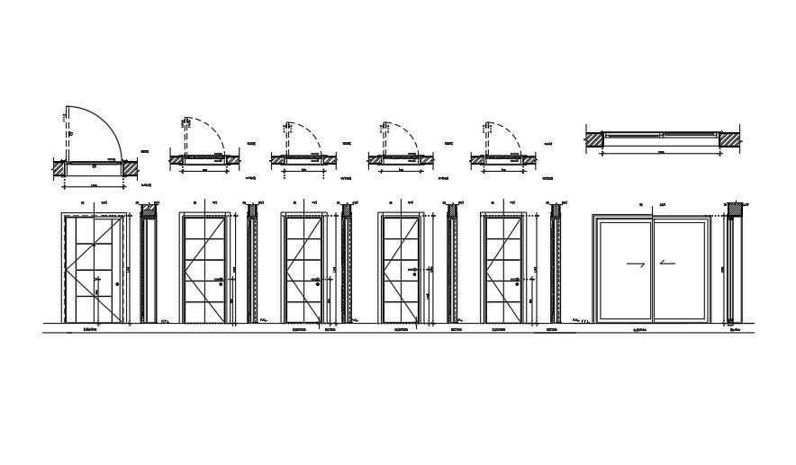 This Architectural Drawing is plans and elevation of doors. In this drawing the plan of different types of doors are shown in detail drawing, The frame, wall door.... elevation shown are also in detail like double door single door, two way opening door, single side opening door. For more details and information download the drawing file.