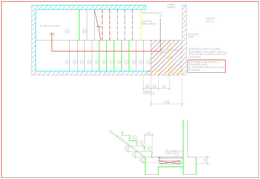 Stair plan of SRF for tower dwg file with view of floor and way of stair with floor and