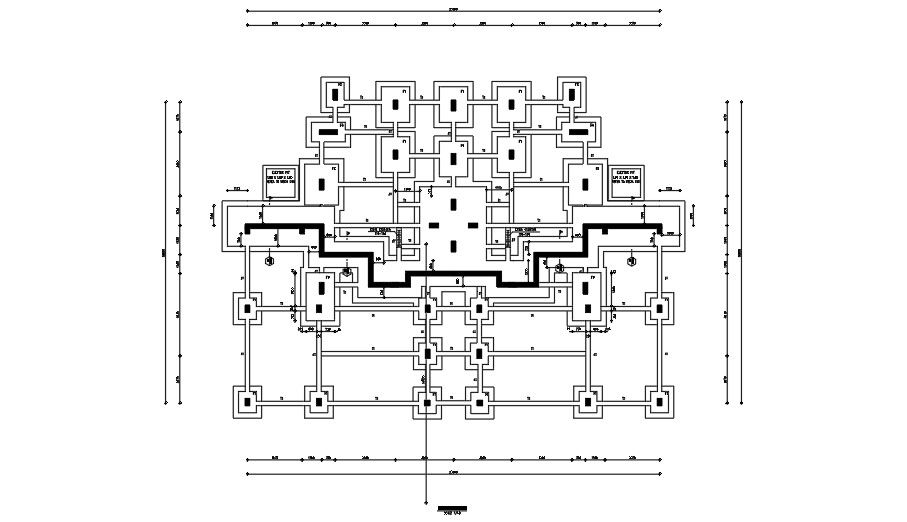 This Architectural Drawing is plan of a Foundation layout. The foundation plan is a plan view drawing, in section, showing the location and size of footings, piers, columns, foundation walls, and supporting beams. A foundation plan ordinarily includes the following: • Footings for foundation walls, piers, and columns (hidden lines). The foundation plan is drawn from information presented on the floor plan, plot plan, and elevation plan drawings. Before drawing the foundation plan, examine the floor plan to determine the type of exterior walls specified. For example, a 4” brick ledge is required for the brick veneer house. For more details and information download the drawing file.